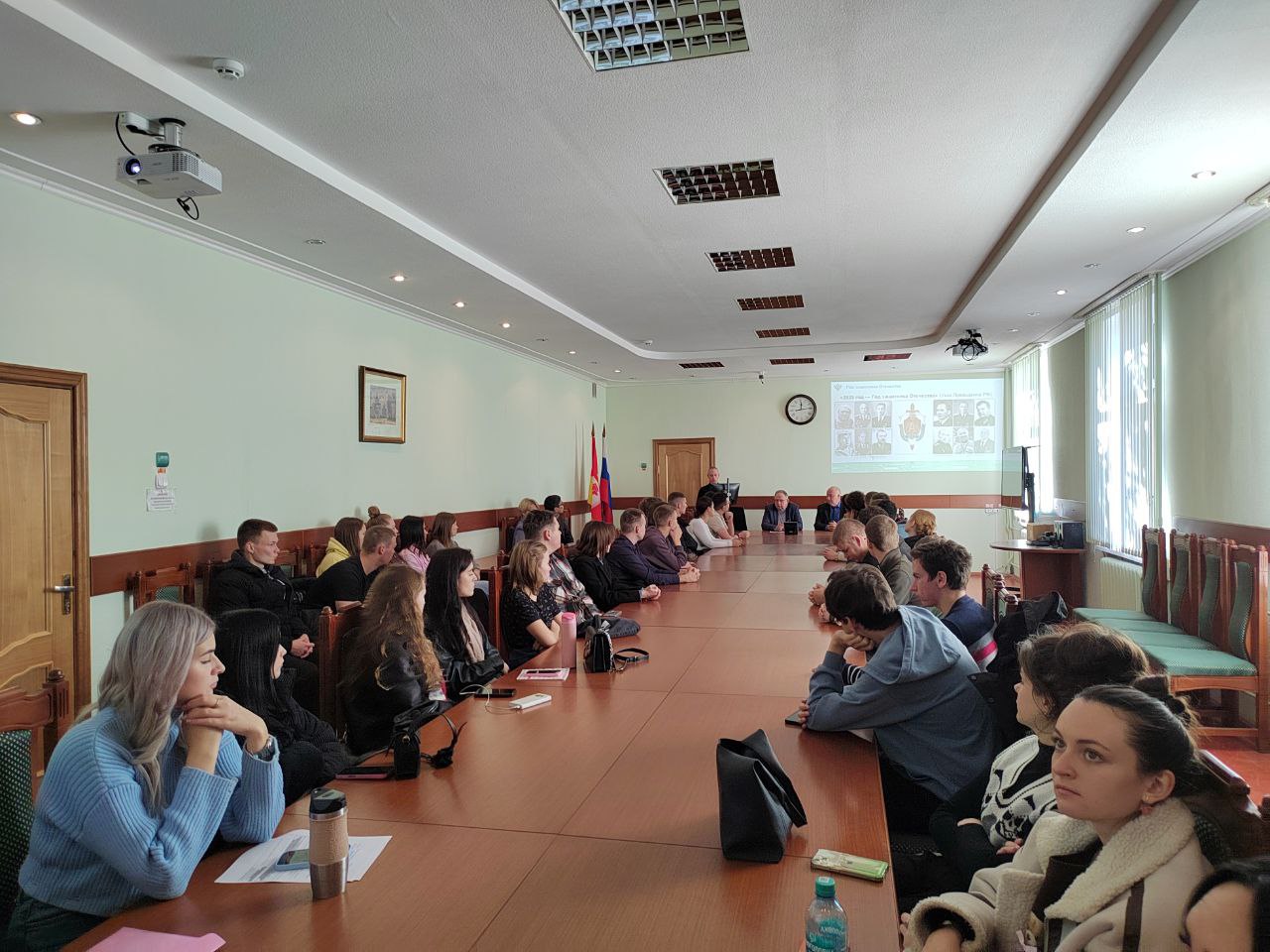 В основу лекции легла презентация издания «Имена героев на карте России», подготовленного Росреестром к 80-летию Победы в Великой Отечественной войне и посвященного ее героям, а также героям современности, чьи имена были увековечены в наименованиях географических объектов решениями Правительства Российской Федерации. Студентам, обучающимся по направлениям подготовки «Землеустройство и кадастры» и «Управление жизненным циклом объектов недвижимости», на наглядных примерах была продемонстрирована связь истории, географии и современной государственной политики по сохранению памяти о защитниках Отечества, а также раскрыта роль Росреестра в этом процессе.