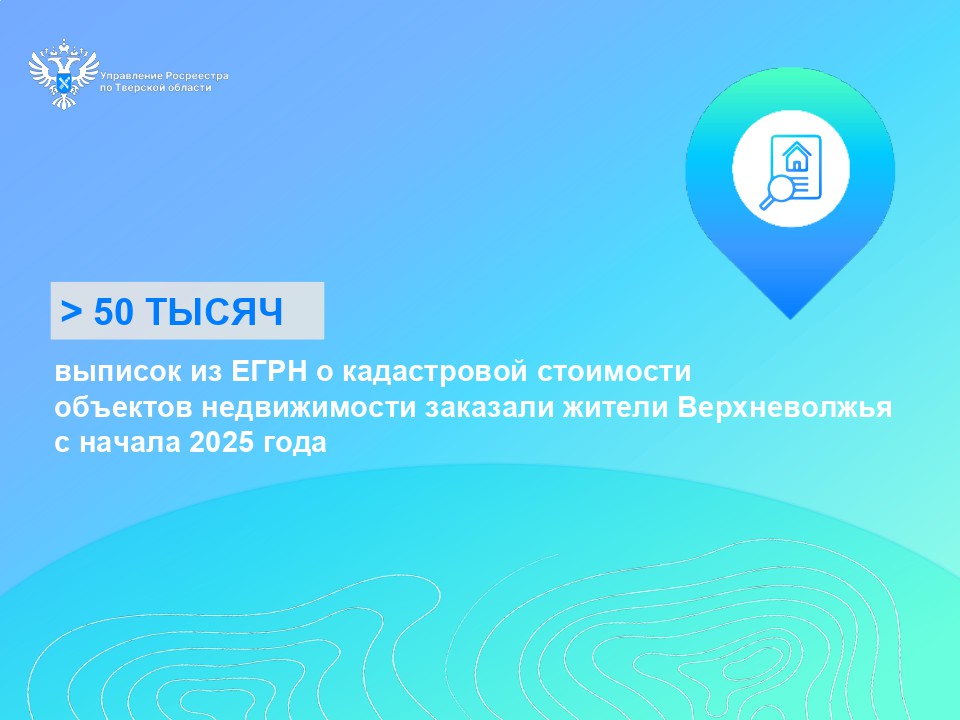 Более 50 тысяч выписок из ЕГРН о кадастровой стоимости объектов недвижимости заказали жители Верхневолжья с начала 2025 года