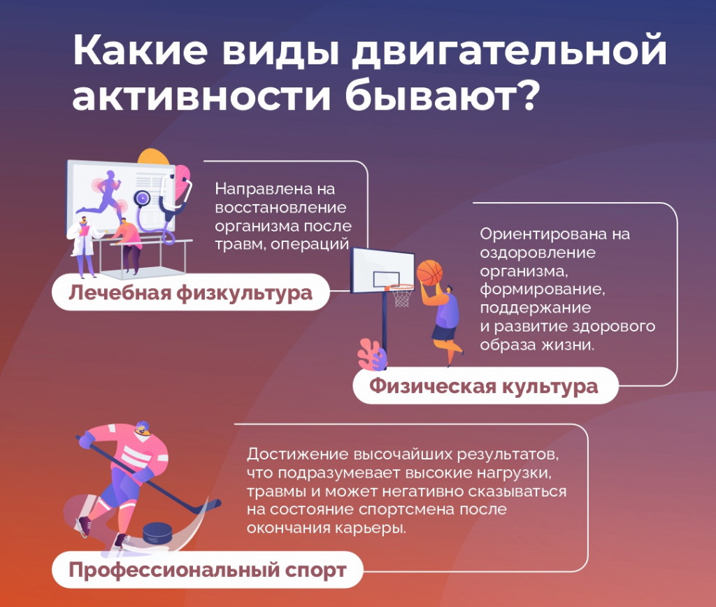 Низкая физическая активность, наряду с курением, избыточной массой тела, повышенным содержанием холестерина в крови и повышенным артериальным давлением, является независимым, самостоятельным фактором риска развития заболеваний.