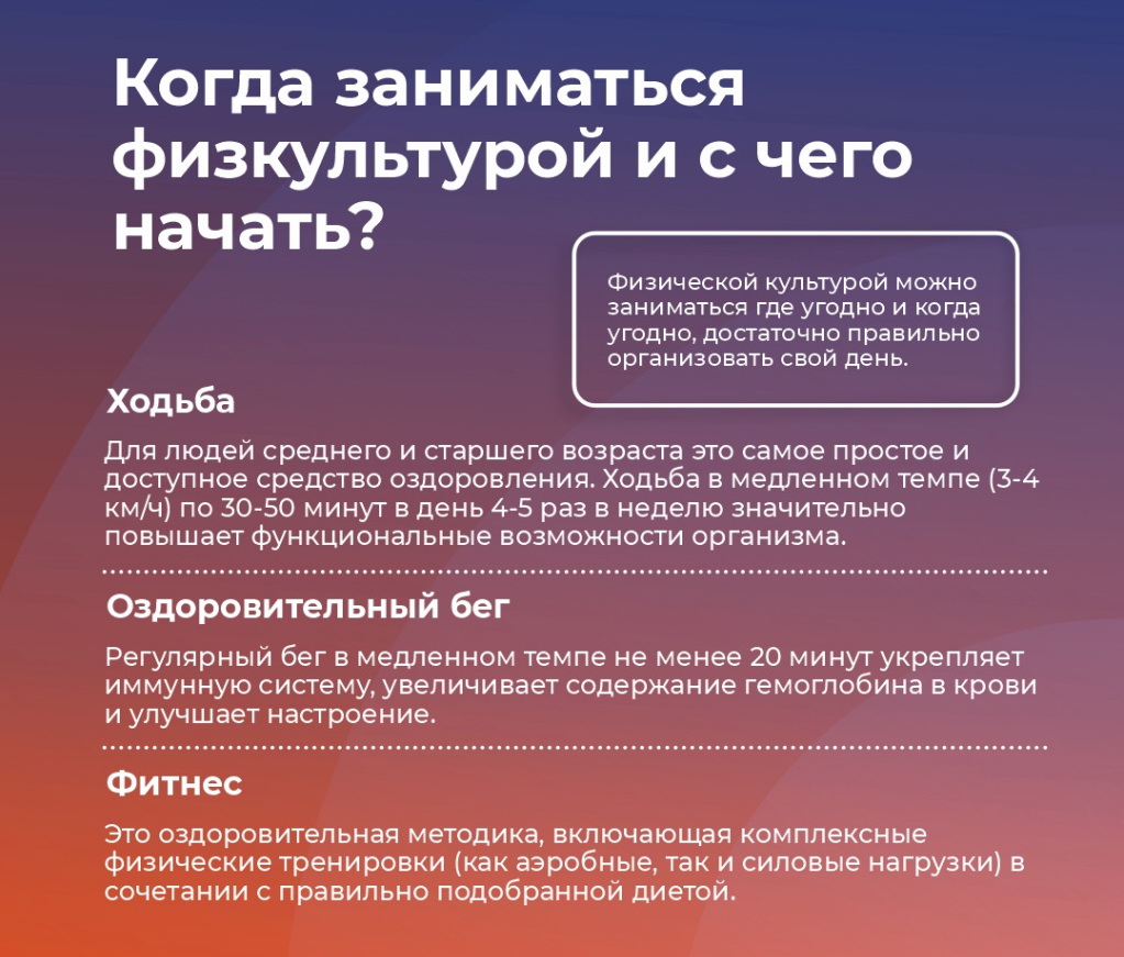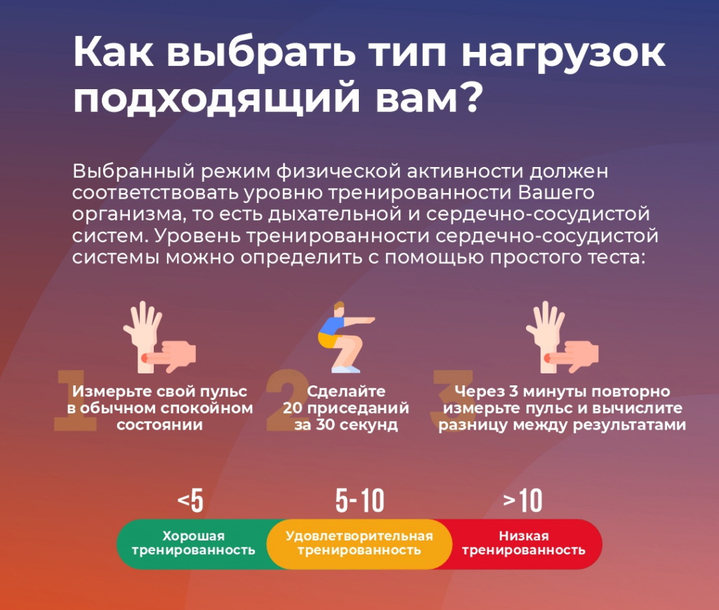 Для получения дополнительных преимуществ для здоровья увеличить время умеренной физической активности до и более 300 минут или время интенсивной физической активности до и более 150 минут в неделю.
