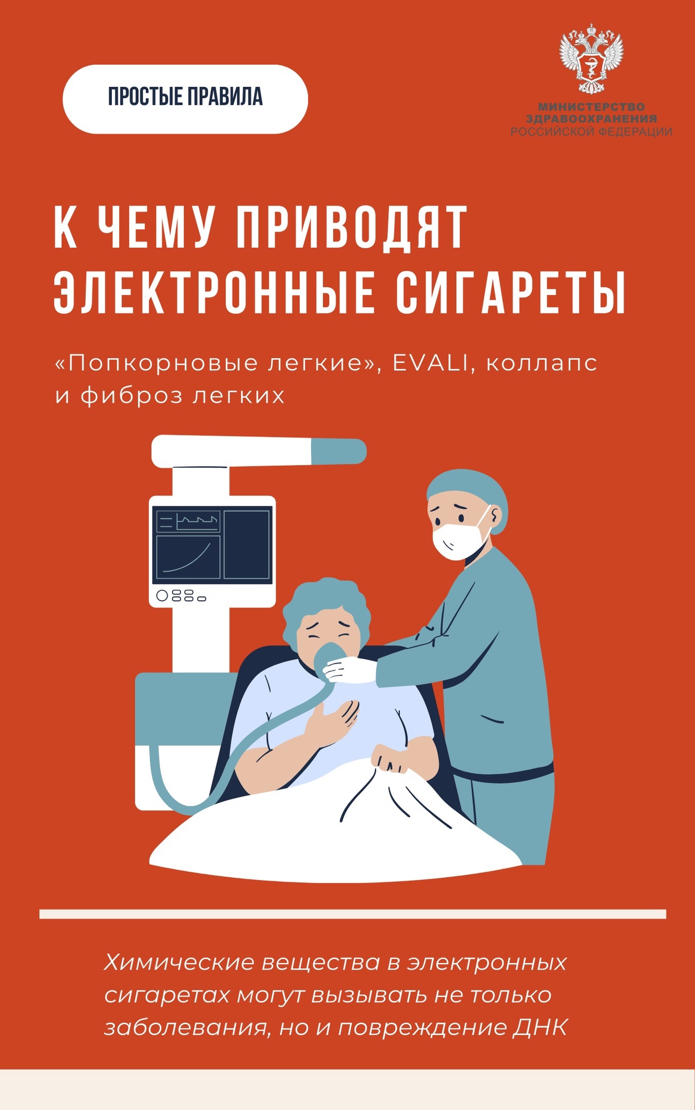 «Попкорновые» лёгкие, фиброз и коллапс лёгких, вот короткий список опасных последствий электронных сигарет