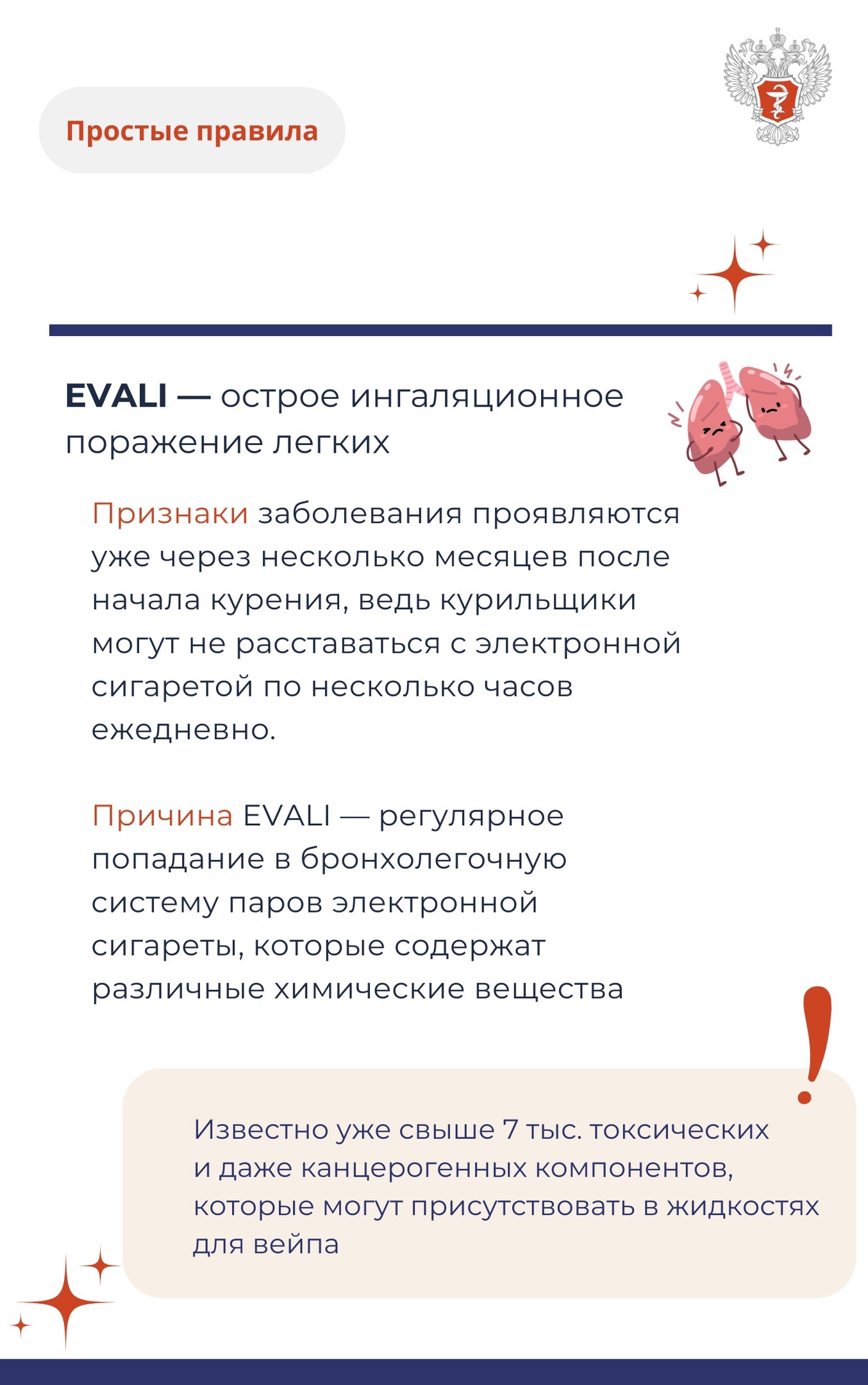 Электронные сигареты вызывают опасные заболевания, так как так же, как сигареты, содержат токсичные компоненты.