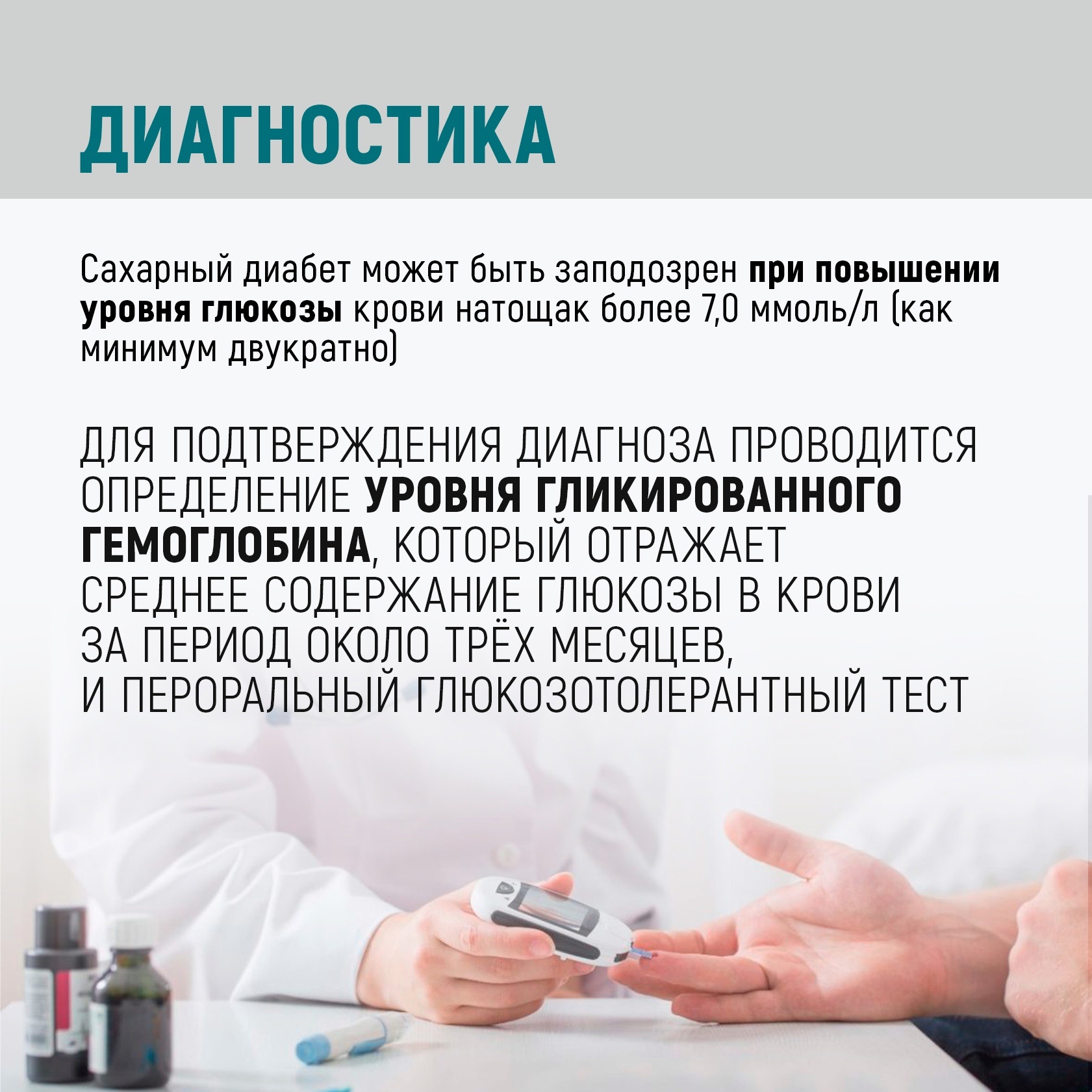 Чтобы вовремя определить — есть ли у вас сахарный диабет, а также определить преддиабет, необходимо ежегодно проверять уровень сахара в крови. Это можно сделать абсолютно бесплатно рамках диспансеризации и профилактических медицинских осмотров.