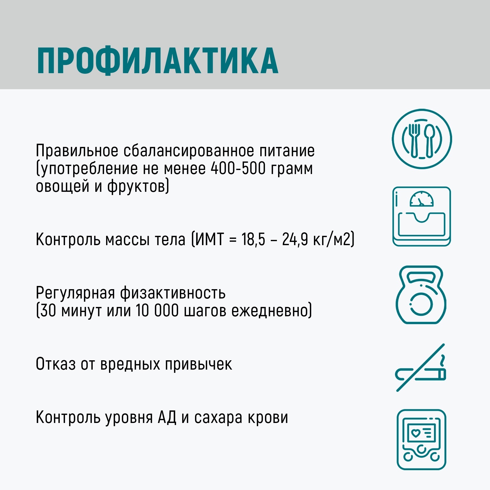 советы по рациональному питанию, физической активности, возможности отказа от вредных привычек, режиму дня и отдыха.